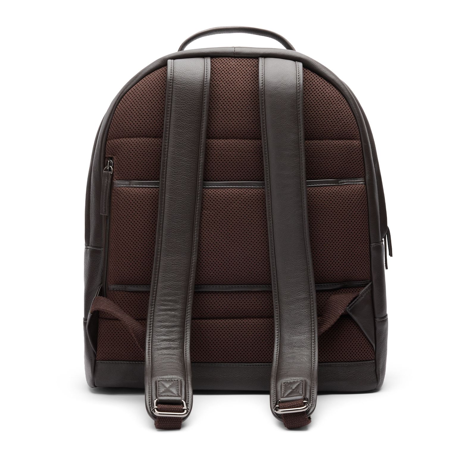 Zwarte leren unisex rugzak van Manfield met een ritssluiting, meerdere vakken en verstelbare banden voor op de rug. De afmeting van de tas is 48x44x15 cm (BxHxD). We adviseren als verzorging en bescherming de Collonil Carbon Pro.
