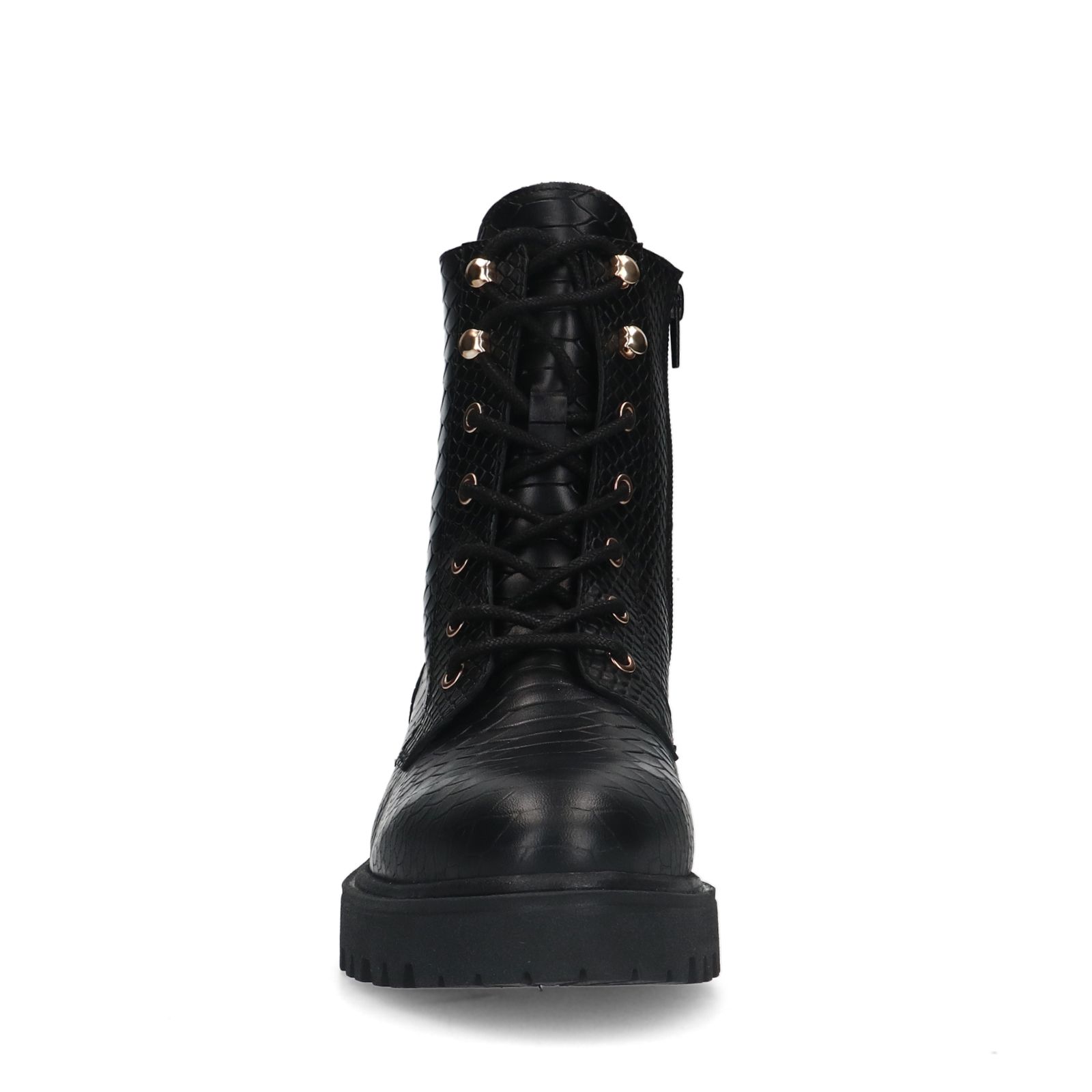 Zwarte leren veterlaarsjes van Manfield. met een platte hak van 3 cm en ritssluiting aan de binnenzijde.. De laarsjes hebben een schachthoogte van 15 cm en de schachtomtrek bedraagt 27 cm. We adviseren als verzorging en bescherming de Collonil Carbon Pro.
