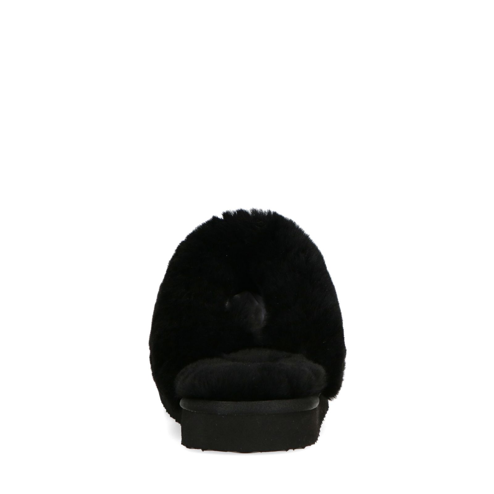 Zwarte pantoffels van het merk Manfield. Deze pantoffels lopen super comfortabel door de wollen voering aan de binnenkant. De buitenkant is gemaakt van suède, waardoor je voeten extra warm blijven in de koude wintermaanden. De wol waarmee de binnenkant is bekleed loopt door over de wreef naar buiten, wat een leuk effect geeft. De zool is plat en gemaakt van kunststof en rubber en dat zorgt voor veel loopcomfort. Deze pantoffels zijn perfect om te dragen als huisschoenen in en rondom het huis.
