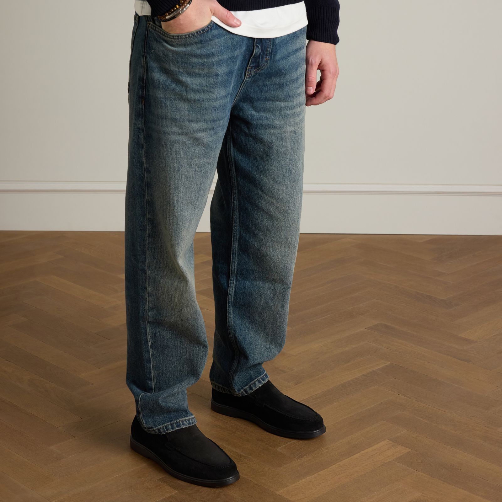 Zwarte suède loafers van Manfield, met zwarte zool van 2 cm. We adviseren als verzorging en bescherming de suède/nubuck spray in zwart.